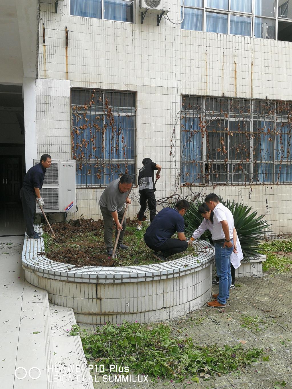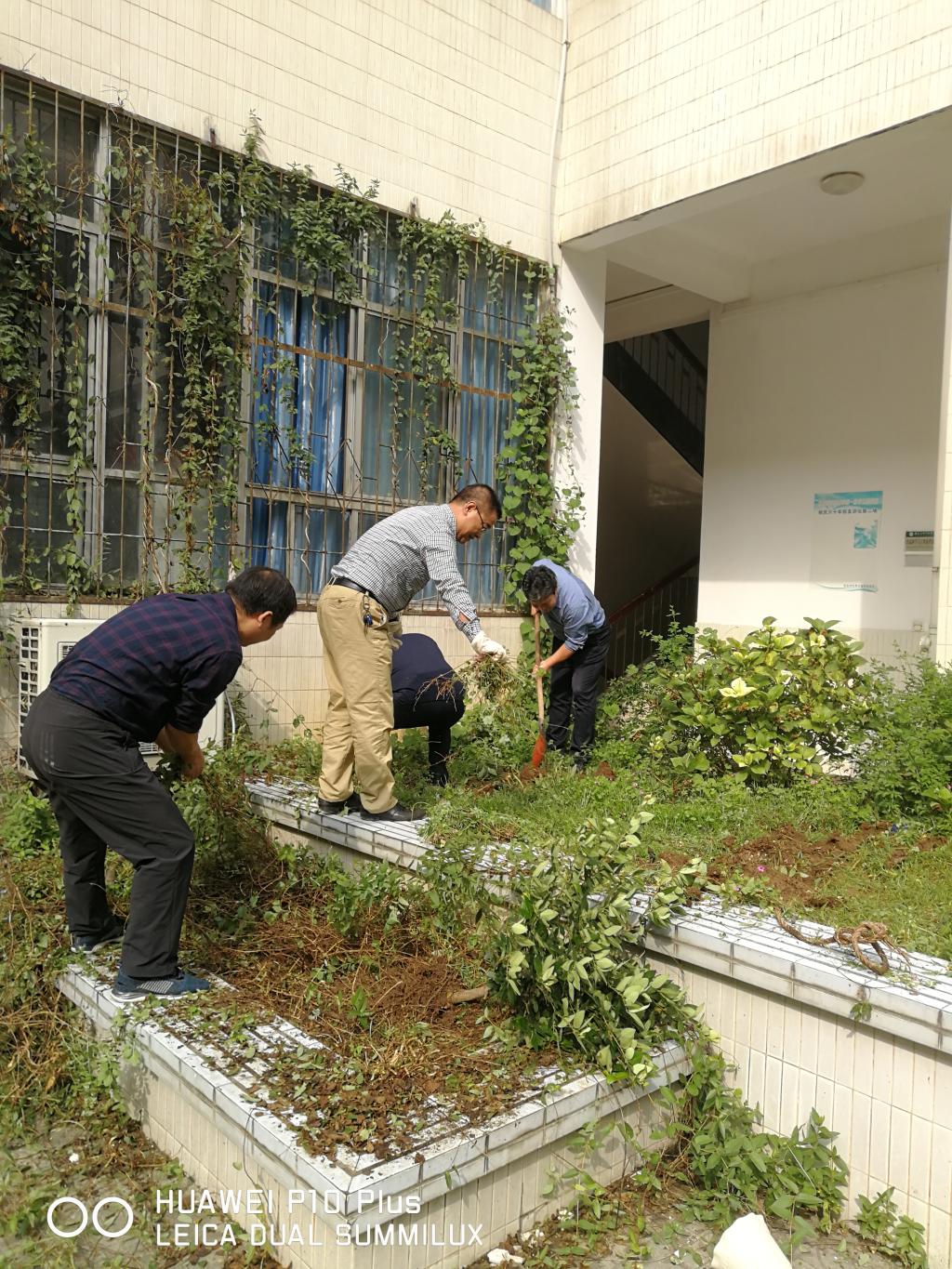 9月24日下午,食品·化工学院N3教学楼院内,食品·化工学院教工和学生4个党支部50多名党员在植物生理学博士孙永林的指导下开展义务劳动,把教学楼内四个花坛重新平整一新。