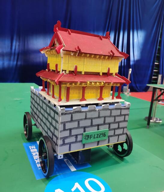 在学校教务处、创新创业学院和食品·化工学院的大力支持下,X-power代表队历时5个月,设计并制作完成 “卧龙出山3.0” 小车,外观以襄阳古城墙和鼓楼为创作原型;动力模块采用氢氧化钾聚丙烯酸水凝胶为电解质,以固态碱性锌空气原电池产生的电能带动马达运转,驱动小车前行;控制系统以过氧化氢型碘钟为反应机制,通过反应溶液颜色的变化来控制电路通断,从而实现小车的精准停车。在小车制作工程中,团队得到了机械学院秦涛博士和交通学院叶万海副书记在零件加工、电路设计等方面提供的无私帮助。经过前期多重审核,代表队成功跻身决赛,并在现场性能竞赛中距离终点线0.056m处实现精准停车,荣获全国排名第二位的好成绩。
