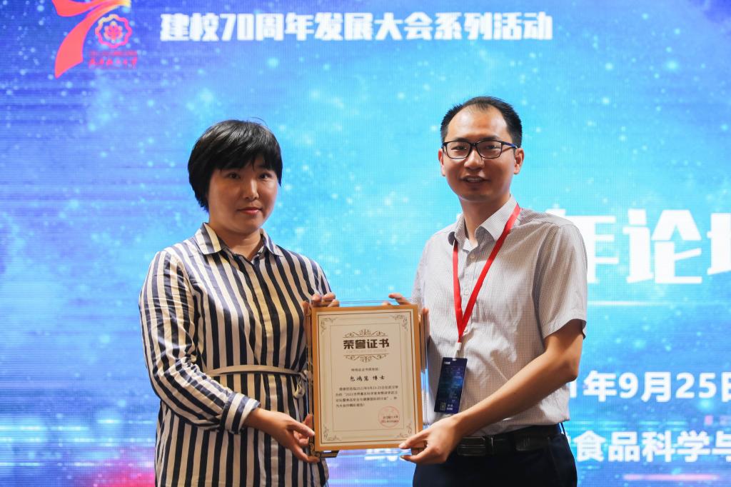 (通讯员 周睿)2021年9月25日上午,我院“楚天学子”、副教授包鸿慧博士在“世界著名科学家来鄂讲学——武汉论坛暨食品安全与健康国际研讨会”上,做了题为“真姬菇多糖结构特性及其对小鼠巨噬细胞的免疫活性作用机理的研究”学术报告。