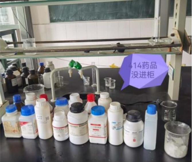 (通讯员 罗静)2022年5月24日下午,学院领导班子成员、四办主任及实验管理人员针对我院实验楼存在的安全隐患,从地下室到顶楼尤其是对药品库房、有机化学实验室、教师科研工作室等重点区域,展开了拉网式排查,对固废液处置暂存区、危化品使用、气瓶摆放、警示标识、消防设施、用电安全等进行了细致检查。对于检查情况,学院第一时间发布了情况通报,并要求相关实验室责任教师立即整改。同时,也就潜在的风险点进行了自纠自查,完成了安全隐患自查分析报告。