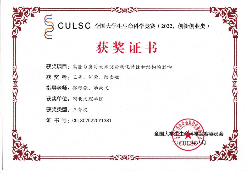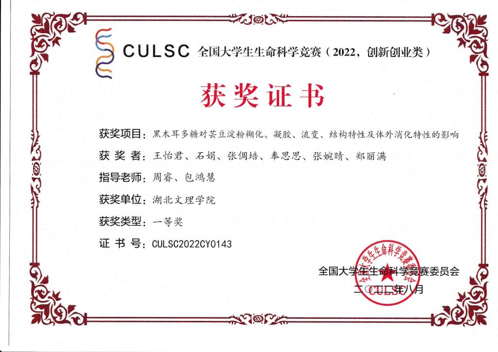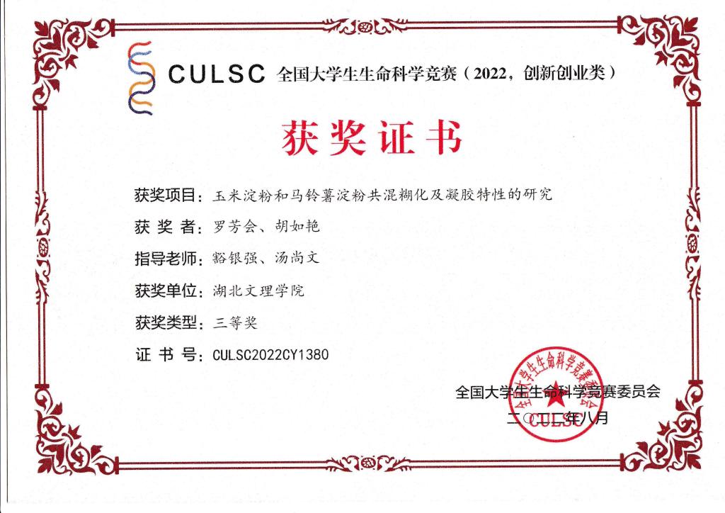 2022年全国大学生生命科学竞赛(创新创业类)已落下帷幕,我院学子在指导教师的精心辅导下奋力拼搏,取得优秀成绩,获得国家级奖励12项,其中一等奖1项,二等奖4项,三等奖7项,祝贺他们!!!