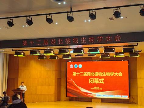 我院余海忠教授和王希庆博士参加了会议,并代表学校成功申请获得2024年第十三届湖北植物生物学大会的承办权。余海忠作为下届承办方作了表态发言。