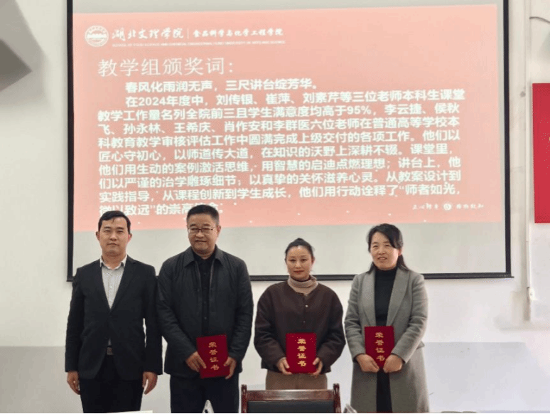 刘传银、孙永林、李群医三位老师代表教学组获奖人员上台领奖;