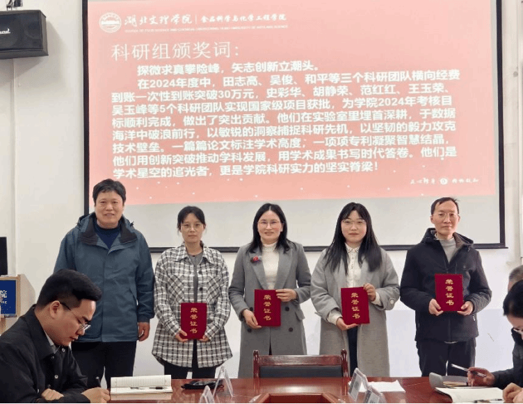 吴俊、胡静荣、王玉荣、吴玉峰四位老师代表科研组获奖人员上台领奖;
