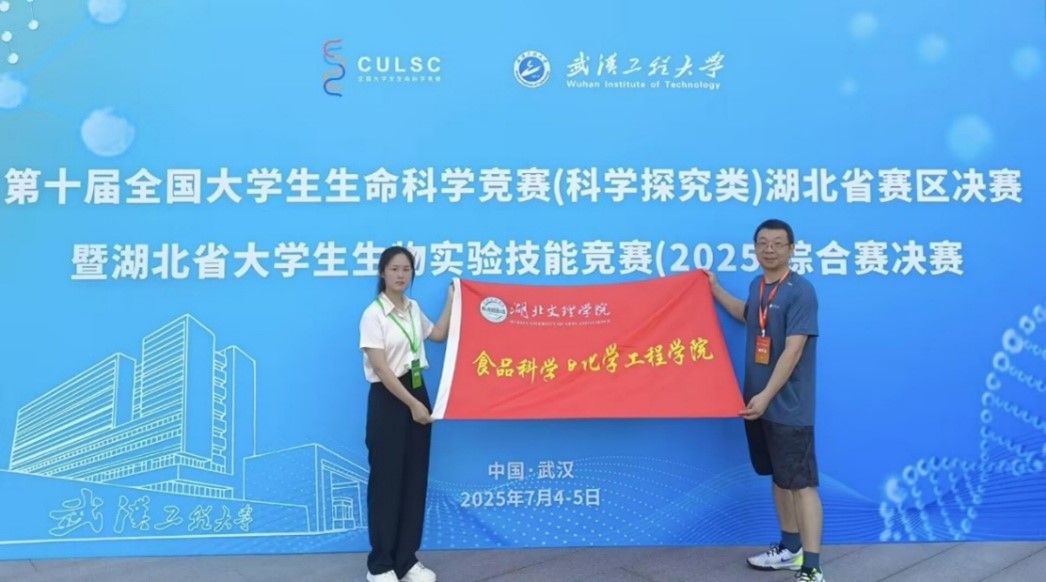 (通讯员 周睿)第十届全国大学生生命科学竞赛(科学探究类)湖北省赛区决赛暨湖北省大学生生物实验技能竞赛(2025)综合赛决赛于2025年7月4日-5日在武汉工程大学举行,我院1支队伍进入决赛。在激烈的角逐中,由我院周睿和包鸿慧老师指导,学生姜娜娜、李培峰、蒲芳蕊、陈顺雨和吴惠怡组成的团队凭借参赛项目《绿茶片提取物抗氧化和酶抑制活性研究及化学组成分析》荣获国家级三等奖。