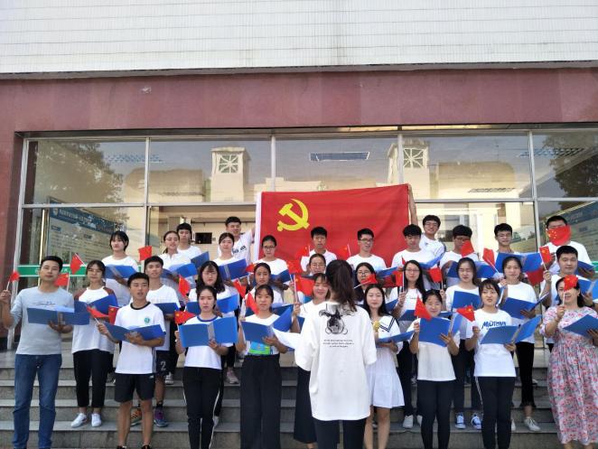 (食品·化工学院 学生通讯员 陈小艳)9月26日,由食品·化工学院学生党支部策划的歌唱祖国“快闪”在北区3栋教学楼门前开拍。30多名青年挥舞手中的五星红旗,身着统一的服装,齐声同唱《今天是你的生日》、《我和我的祖国》,共同朗诵《赞美你,我亲爱的祖国》,用歌声祝福祖国,传递爱国心声。