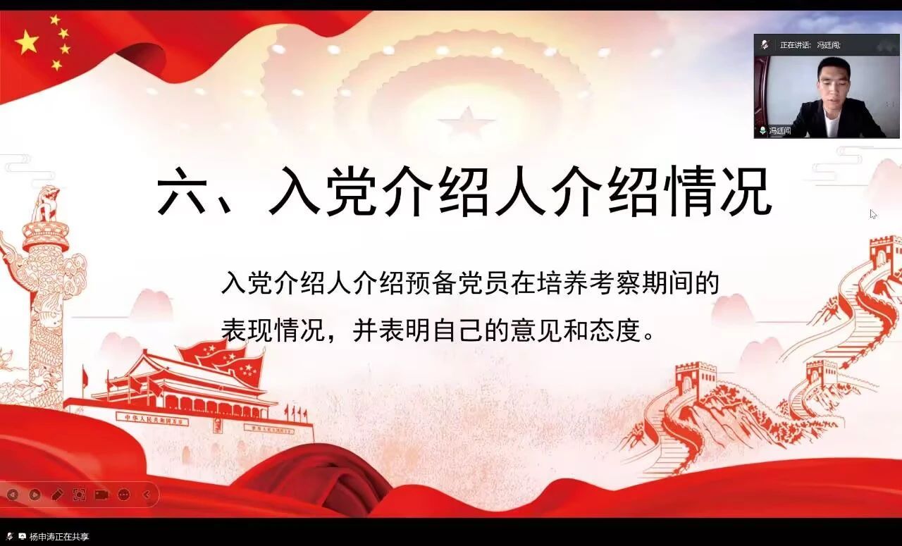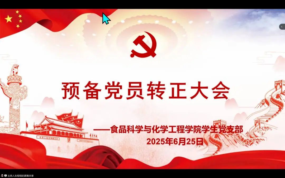 (通讯员 马智慧)为深入贯彻落实新时代党的建设总要求,进一步加强和规范党员队伍建设,严把党员发展质量关,william英国中文学生党支部于6月25日18时30分,通过腾讯会议平台,成功举办了学生食品支部和化工支部的预备党员转正大会。本次大会由学生党支部书记包静、向琼同志主持,全体学生党员、预备党员以及重点培养对象均出席了会议,共同见证了这一庄严而神圣的时刻。