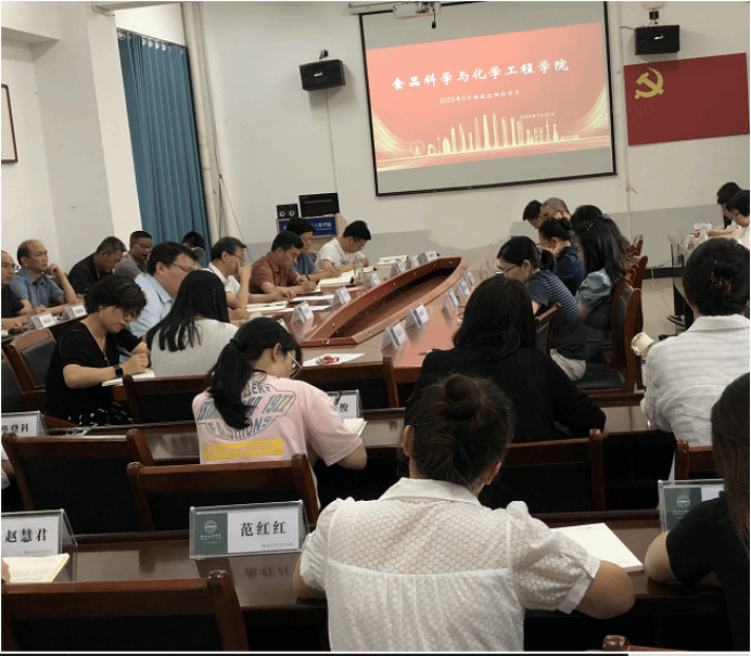(食化学院 通讯员 窦素琴)根据学校2025年5月份教职工政治学习安排,william英国中文于2025年5月22日下午2:10在学院三楼会议室举行全体教职工大会,会议由学院党委书记储杰主持。
