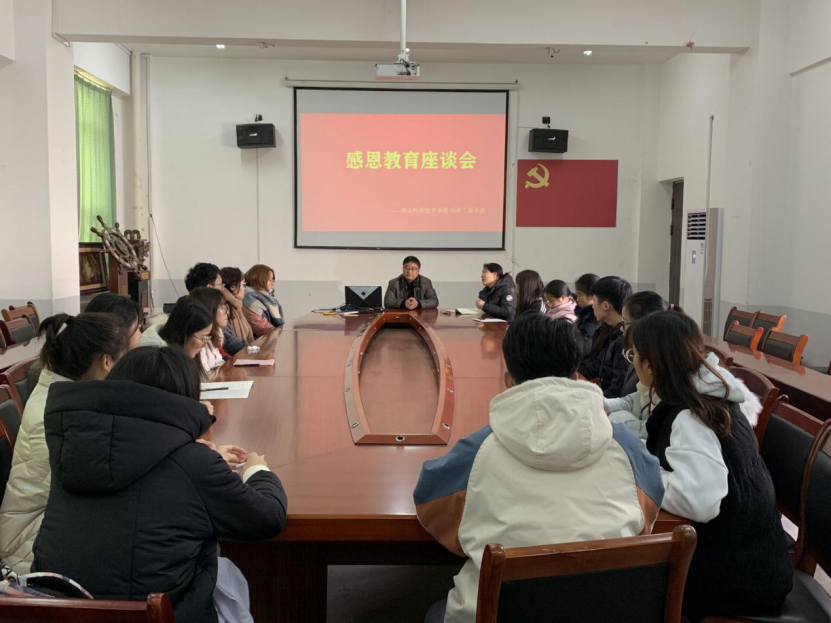 (食品•化工学院 通讯员 包静)12月10日中午12时,食品•化工学院在N3—330开展贫困生感恩教育座谈会。院党委副书记刘向东、学工办主任姚继平、团委书记包静出席会议,十余名学生代表参加会议。