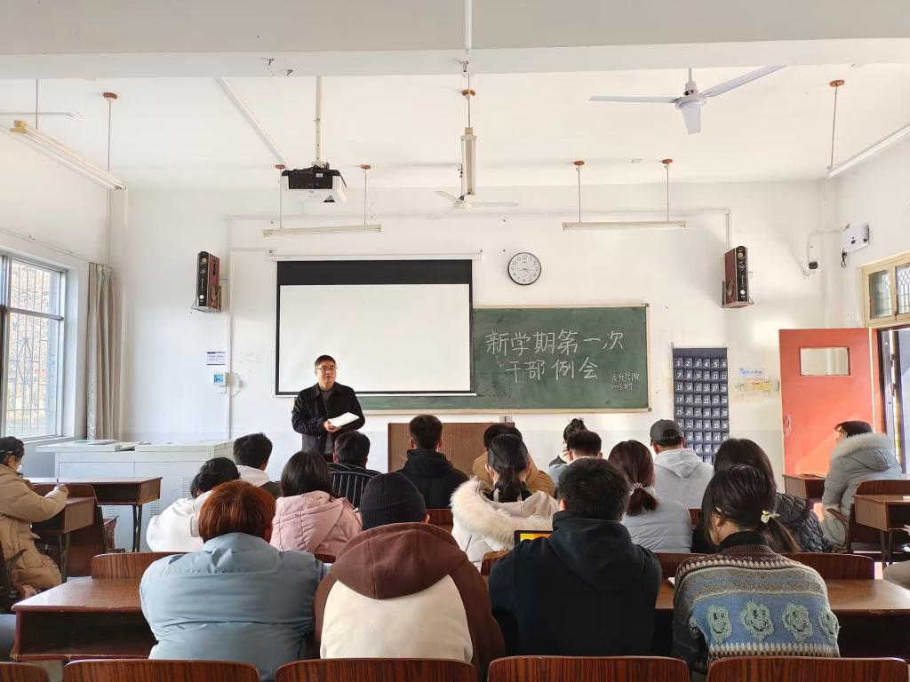 (食品·化工学院 通讯员 唐樱)为更好部署新学期的新要求、新安排,食品·化工学院于2月19日下午3:00在N4教学楼103教室开展新学期第一次干部例会,学院党委副书记刘向东、学生党支部书记包静、学生辅导员向琼、周武毅和学院全体学生干部参加。
