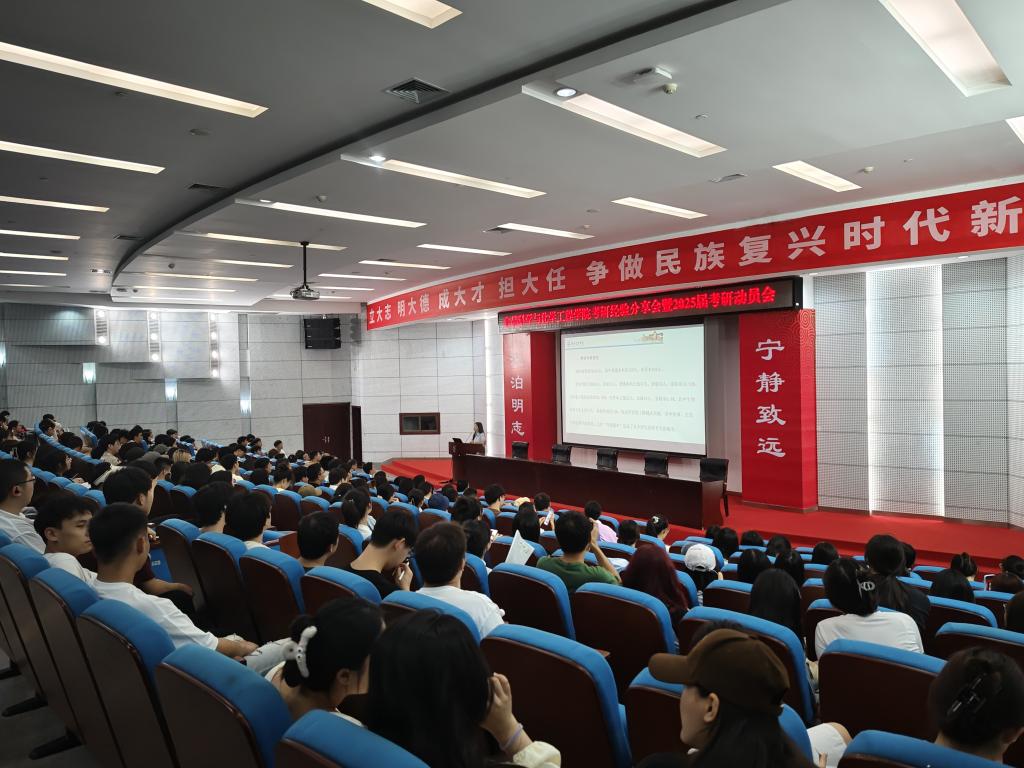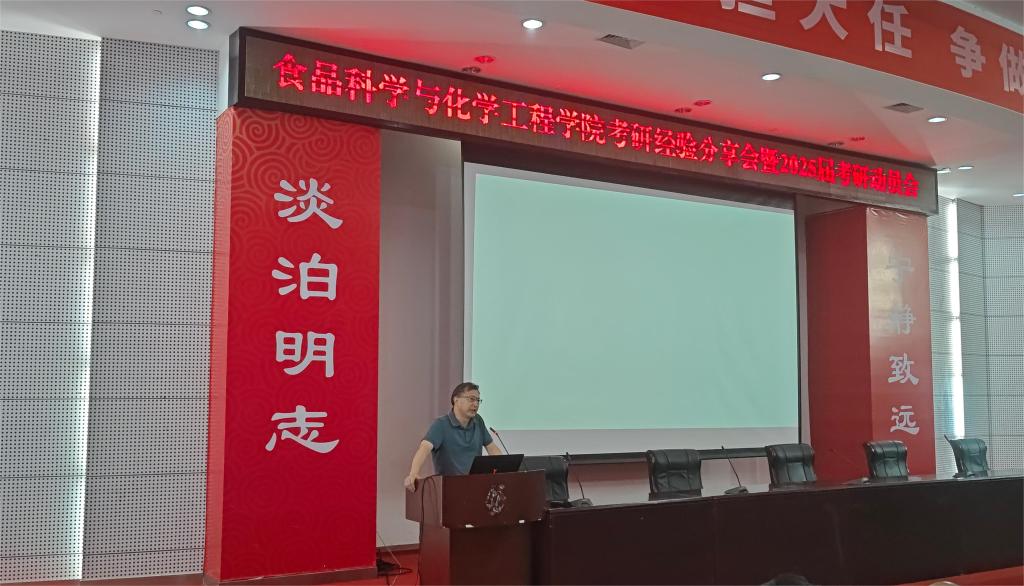 (通讯员 周武毅)为推动学院学生高质量就业,帮助学生树立考研信心,2024年5月23日18时,学院在图书馆三楼报告厅召开2024年考研分享会暨2025届考研动员会,学院党委书记储杰、副书记刘志新、副院长李玉奇、党委委员郭壮、教学委员会主任肖作安、食品系主任李云捷、化工系主任侯秋飞、学工办主任包静、分团委书记向琼、辅导员周武毅、中信鸿图培训机构负责人张鹏、2024届考研学生代表、2025届全体学生参加会议。会议由刘志新主持。