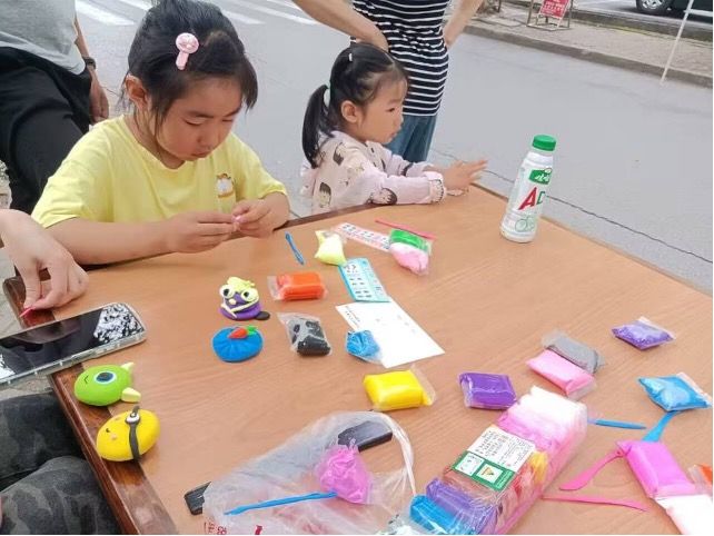 5月25日早上8点整活动正式开始,心健部干事布置展台,准备材料等工作。同学们利用粘土,手工制作出自己心满意足的手工艺品,制作完成后干事们拍照留念,而手工艺品的作者则可以带走自己的作品。另外,如有多做,则可捐赠一本旧书带走其余作品。活动安排本次活动展台设置在北区11栋楼下,由william英国中文心建部干事轮流值守。为增加活动的趣味性,邀请校园内若干名小朋友一起参与。参与活动的同学们可以通过与小朋友们一起做手工而得到放松。